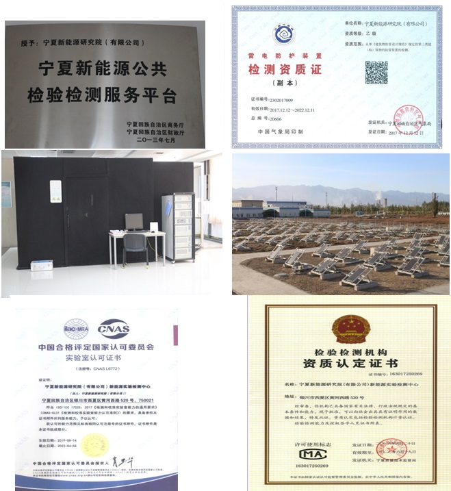 检测中心作为独立第三方检测机构,主要从事太阳能光伏产品检测、光伏电站性能检测、防雷防静电装置检测、机械性能和安全性能测试及光伏发电系统工程验收和技术监督等技术服务工作,是宁夏新能源研究院最具特色的基础服务平台,检测中心投资4500万元建成了西北首家集室内、户外、电站三维一体的光伏检测中心,并建成了国内首家户外组件多场景并网在线测试平台。中心于20136月通过CMA资质认定(证书编号:163017250269),20143月获得CNAS实验室认证认可证书(注册号:CNAS L6772),并于20137月被宁夏回族自治区商务厅、财政厅联合授名为“宁夏新能源公共检验检测服务平台”。目前已完成全国约3GW的电站检测技术服务项目。检测中心拥有国际先进测试设备60台;检测能力范围涵盖IEC61215IEC61646IEC61730和美国UL1703等标准共计50项检测项目。(联系人:杨中其,电话:0951-888729113709574698)